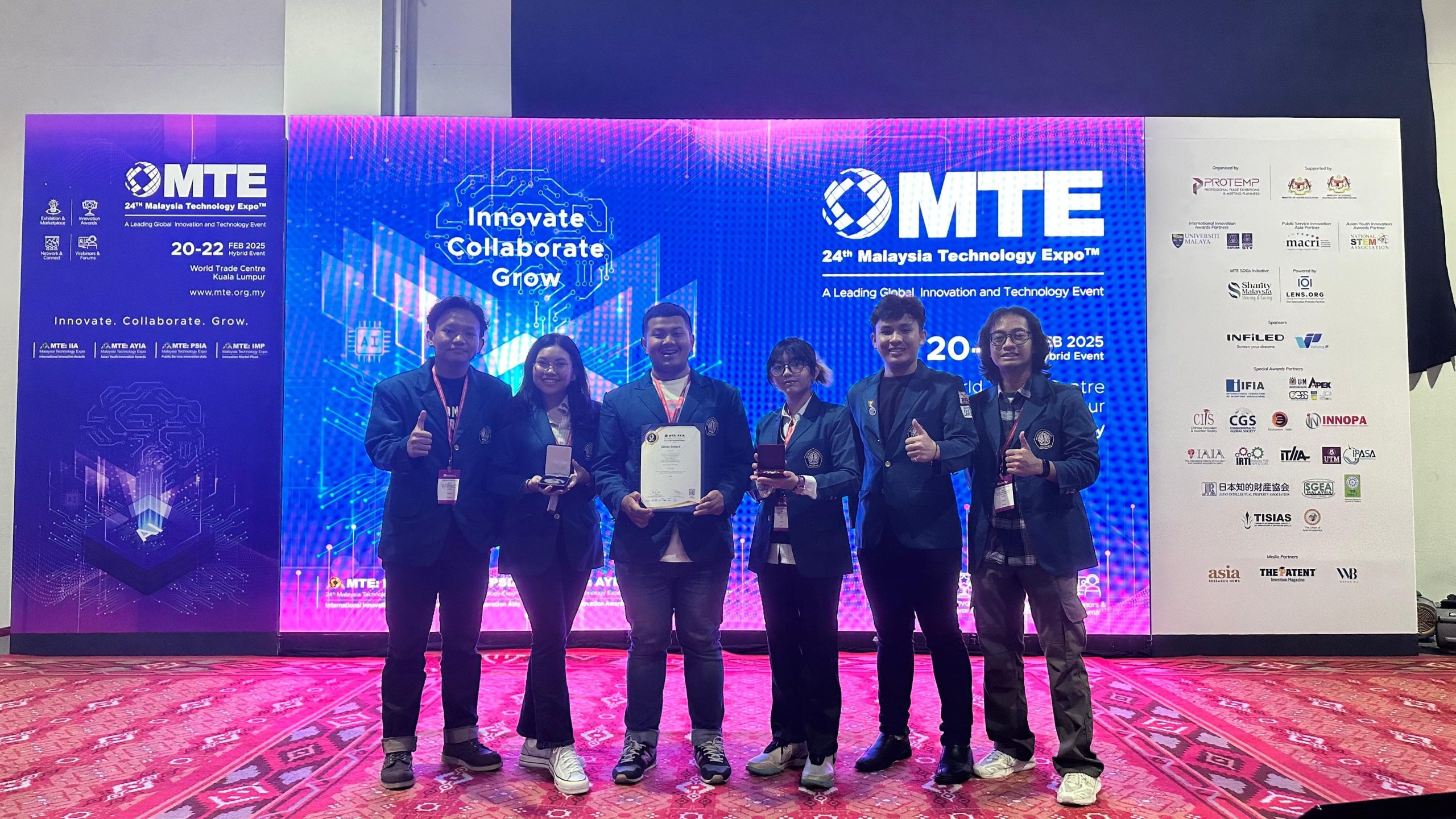 Diponegoro University (UNDIP) Electrical Engineering student team won the Silver Medal and Special Award from the Chinese Innovation and Invention Society (CIIS) in the Malaysia Technology Expo (MTE) 2025 event held on February 20-22, 2025. The team consisting of Muhammad Reynard Fawwaz, Gilbert Daniel Silitonga, Hanan Winardi, and Ahmad Farruq Fadlul Karim and Rasya Theresa Jeffronsson Purba (Computer Engineering) competed with an innovation entitled “TiDeX (Tire Detection X): Employing CNN Approach to Mitigate Accident Risk”. This innovation is a tire leak detection tool based on the YOLO (You Only Look Once) algorithm that aims to prevent the risk of driving accidents.