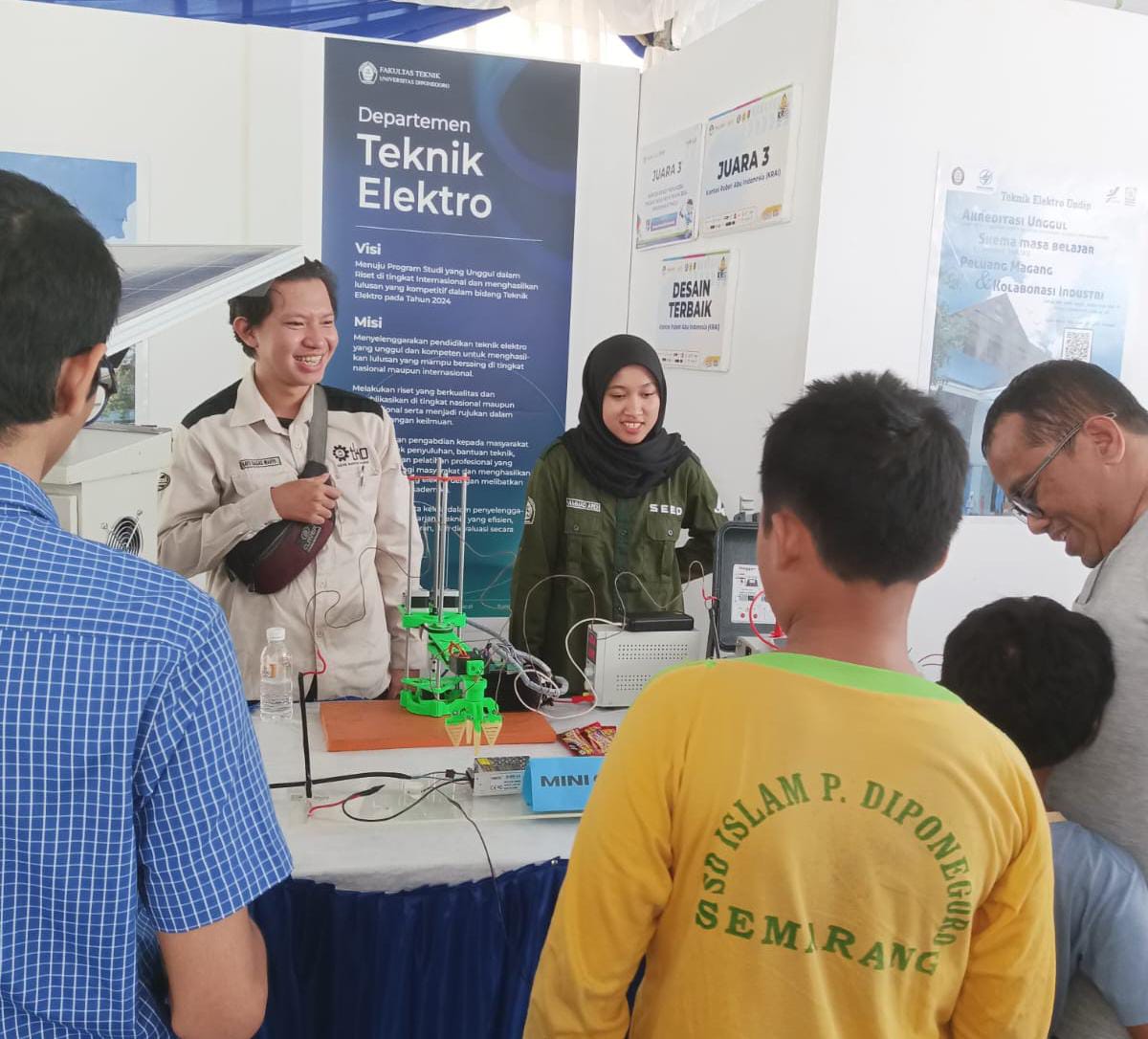 The event received high enthusiasm from visitors from various backgrounds, including high school/vocational school students, accompanying teachers, parents, and the general public interested in the field of engineering and higher education. Their presence added to the lively atmosphere and demonstrated the significant interest in the Faculty of Engineering at Undip. During the Expo, each department showcased their outstanding works and innovations. The Electrical Engineering Department also participated by displaying various research results and technological projects, including a robotic arm, a humanoid robot, a game detector, a smart PV feeder, a 15 kV transformer, a silicone rubber composite insulator, and a megger measuring device.